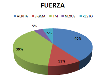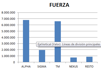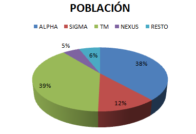 Analizando estos datos podemos comprobar que ALPHA es la más fuerte en cuanto a fuerza y la que más daño hace y TM es la que más población tiene.