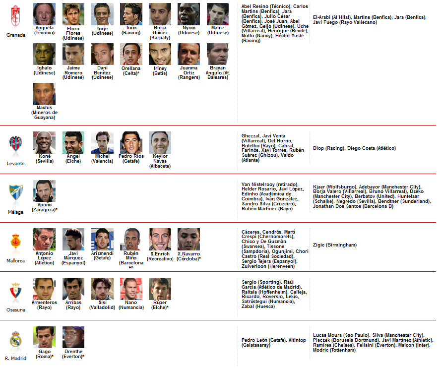 Aquí teneis todas las altas, bajas y jugadores que interesan de los 20 equipos que forman esta liga: