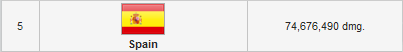 Ayer conseguimos hacer 75 millones de daño y conseguimos situarnos en el top 5 de daño mundial; y el día anterior conseguimos hacer 55 millones de daño y nos situamos en el séptimo país con más daño del día.