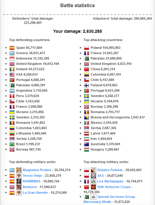 A pesar de contar con poco apoyo aliado, un país como Polonia (2071 ciudadanos) tuvo que contratar a bastantes mercenarios para ganar a un país pequeño como España (362 ciudadanos).