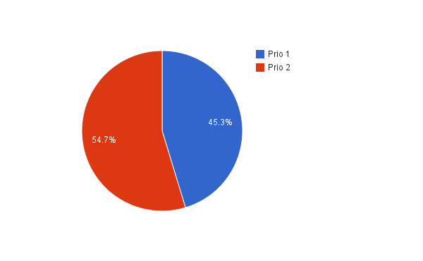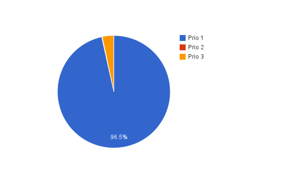 Där det är aktuellt finns ett cirkeldiagram per dag för att visa på skadans fördelning mellan de olika prio-alternativen.