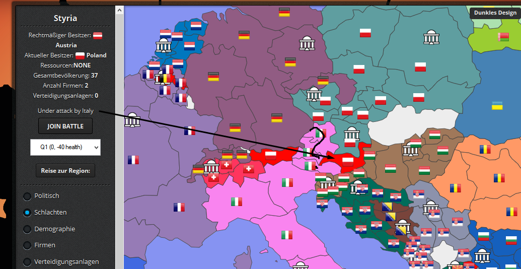 The last and probably the most important module is military. In E-Sim, countries are constantly fighting each other for control over territories which in return grant them access to more valuable raw materials. For this purpose, they form alliances, they fight international wars, but they also have to deal with, for example, uprisings in conquered countries or civil wars, which may explode on their territory. You can also take part in these clashes, although you are also given the opportunity to lead a life as a pacifist who focuses on other activities in the game (for example, running a successful newspaper or selling products).