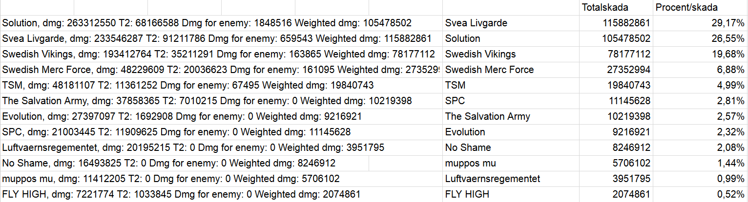 Perioden omfattar 12 dagar och är från det att vi påbörjade detta krig med att anfalla Norge, t.om i Söndags då vi erövrade Skottland. Kravet på MUna för kvalificering i utdelningen är minst 24 miljoner vägd skada, alltså
