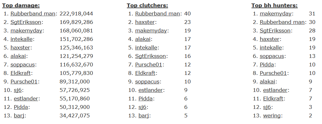 Även våra två guldarbetare/medlemmar har krigat, ebaboy har gjort 28,256,286 skada och wering 10,497,985.