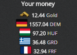 Auch das Equipgeschäft läuft sehr gut und hat jetzt schon 2 sehr gute Q5 Equips hervor gebracht und hat den kompletten Tschechien-Krieg finanziert. Alles in allem 140g Gewinn.
