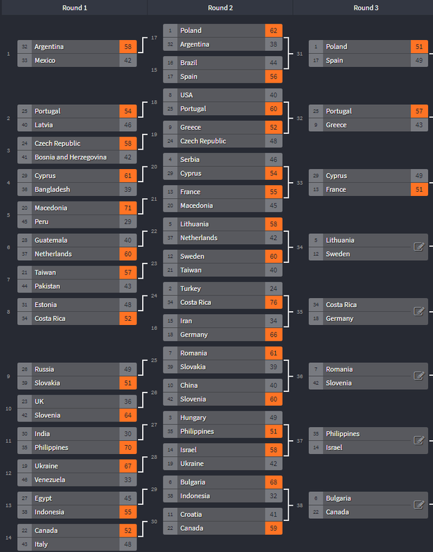 France has beaten Cyprus with just 1 vote difference and now we have COSTA RICA and GERMANY fighting for a place in the 4th round.