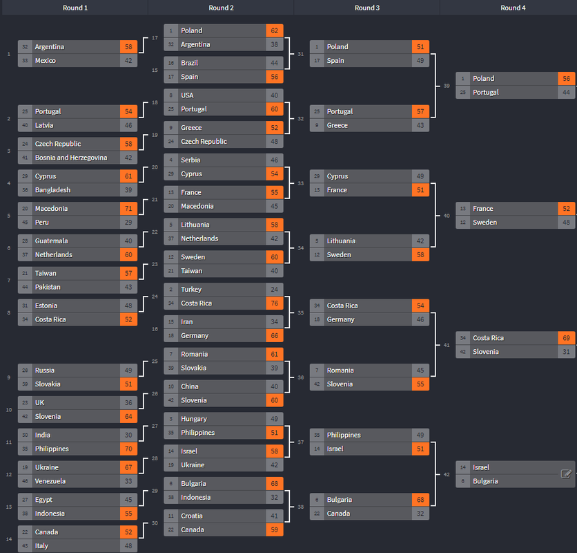 France has won a hard battle against Sweden meanwhile Costa Rica won pretty easy against Slovenia.Now we have the last battle from the quarter finals between BULGARIA and ISRAEL.