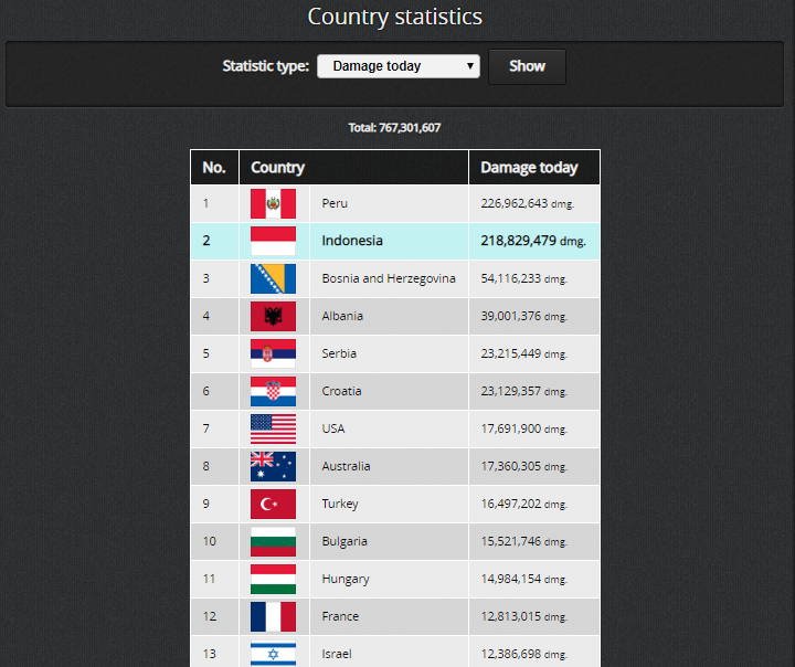 As a result, both Indonesia and Peru today has the two most damage today in country statistik