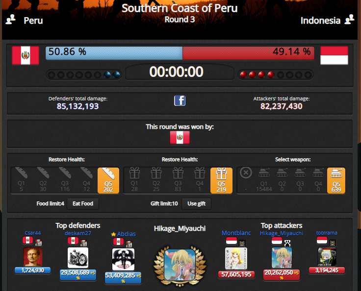 We still take it easy but unexpectedly Peru side fight us seriously so only around 10kk damage dumped on both side