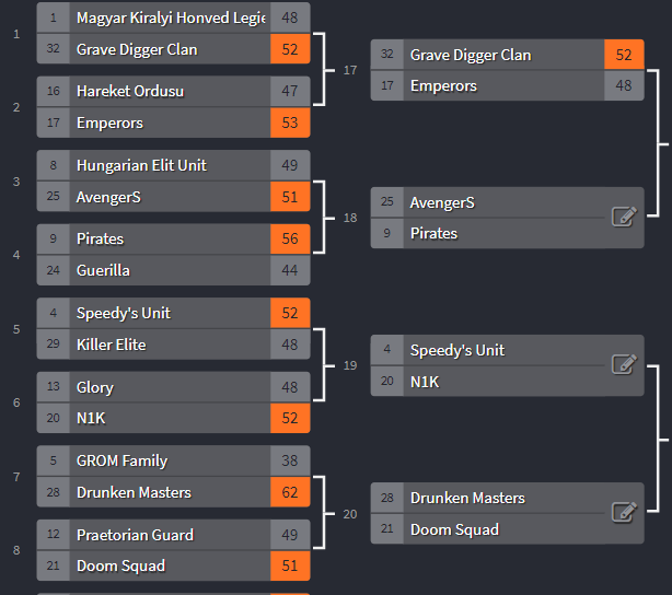 Grave Digger Clan has won pretty hard against Emperors and now we have 2 teams which won against Bulgarian mu's in the first round: N1K and Speedy's Unit .