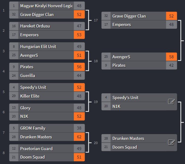 Avengers has easily won against Pirates and now Bulgaria's national mu Drunken Masters is competing against DooM SquaD