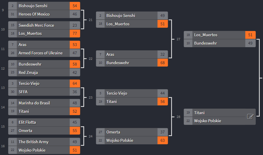 Los Muertos has won against Bundeswehr and they're in the semi-finals ,now their next opponent will be between TITANI and WOJSKO POLSKIE