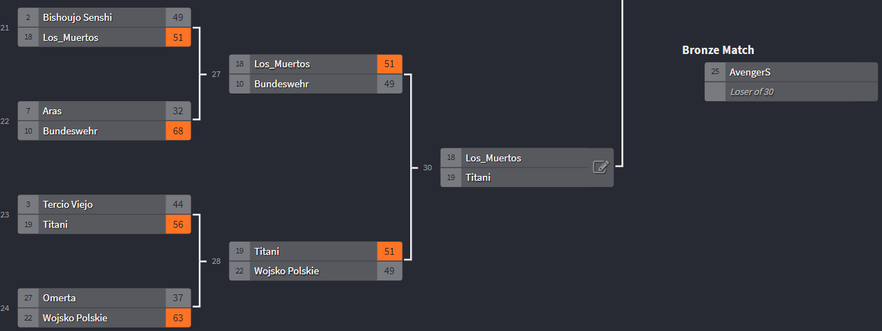 Now LOS MUERTOS is competing against TITANI for the second place of the final.