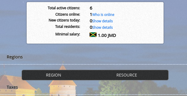 Activities in this game are divided into several modules. First is the economy as a citizen in a country of your choice you must work to earn money, which you will get to spend for example, on food or purchase of weapons which are critical for your progress as a fighter. You will work in either private companies which are owned by players or government companies which are owned by the state. After progressing in the game you will finally get the opportunity to set up your own business and hire other players. If it prospers, we can even change it into a joint-stock company and enter the stock market and get even more money in this way.