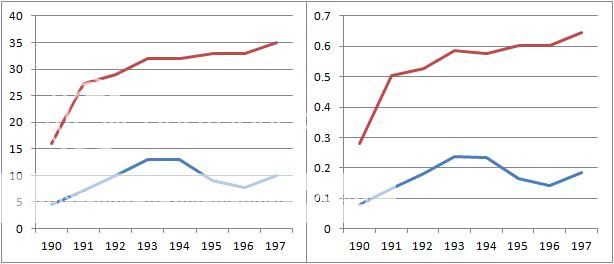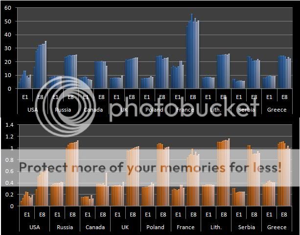 The following graph is shows wages from benchmark countries. The E1 and E8 designate the appropriate Economy skill of the job seeker. Top Graphic is in Local Currency, bottom is in Gold. Taxes are included in the Gold Earnings.