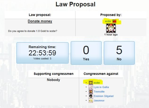 I have observed that there is a bug in Law proposal that the one who propose a law can vote against that law...... what is this if he think it is not right then why he had propsed that law to congress?????