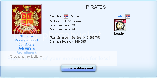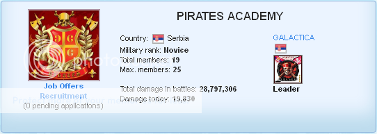 Ланац команде се строго поштује, па самим тим Србија се доста ослања на ударање Пиратерије. У скоро свим важнијим биткама за Србију они су у самом врху статистика по нанесеној штети.