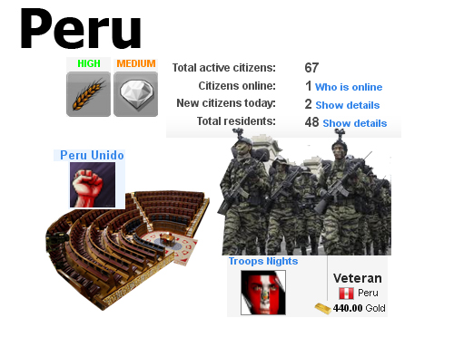 In E-Sim we have a huge, living world, which is a mirror copy of the Earth. Well, maybe not completely mirrored, because the balance of power in this virtual world looks a bit different than in real life. In E-Sim, USA does not have to be a world superpower, It can be efficiently managed as a much smaller country that has entrepreneurial citizens that support it's foundation. Everything depends on the players themselves and how they decide to shape the political map of the game.