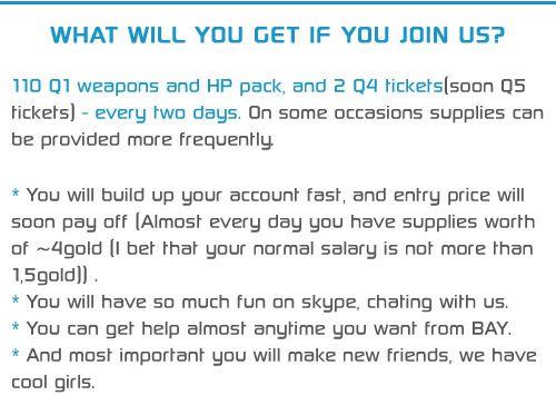 Activities in this game are divided into several modules. First is the economy as a citizen in a country of your choice you must work to earn money, which you will get to spend for example, on food or purchase of weapons which are critical for your progress as a fighter. You will work in either private companies which are owned by players or government companies which are owned by the state. After progressing in the game you will finally get the opportunity to set up your own business and hire other players. If it prospers, we can even change it into a joint-stock company and enter the stock market and get even more money in this way.
