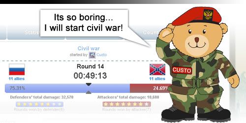 The last and probably the most important module is military. In E-Sim, countries are constantly fighting each other for control over territories which in return grant them access to more valuable raw materials. For this purpose, they form alliances, they fight international wars, but they also have to deal with, for example, uprisings in conquered countries or civil wars, which may explode on their territory. You can also take part in these clashes, although you are also given the opportunity to lead a life as a pacifist who focuses on other activities in the game (for example, running a successful newspaper or selling products).