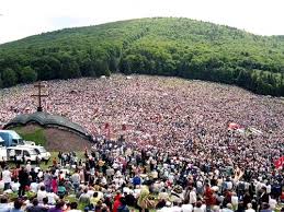 több százezer résztvevő jelenlétében megtartott búcsú az erdélyi Csíksomlyó melletti Kis-Somlyó és a Nagy-Somlyó hegy közötti nyeregben.