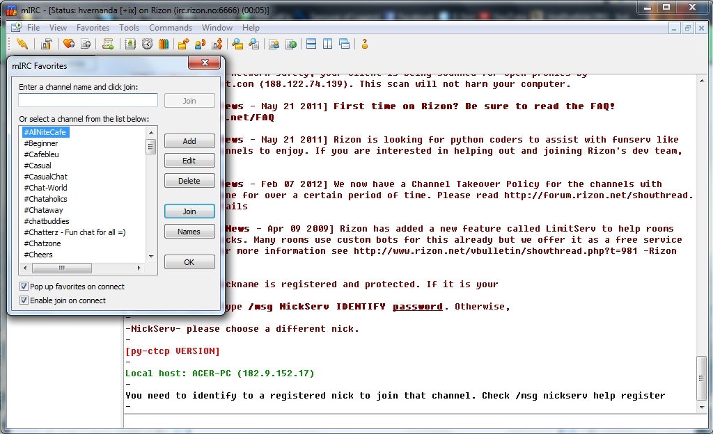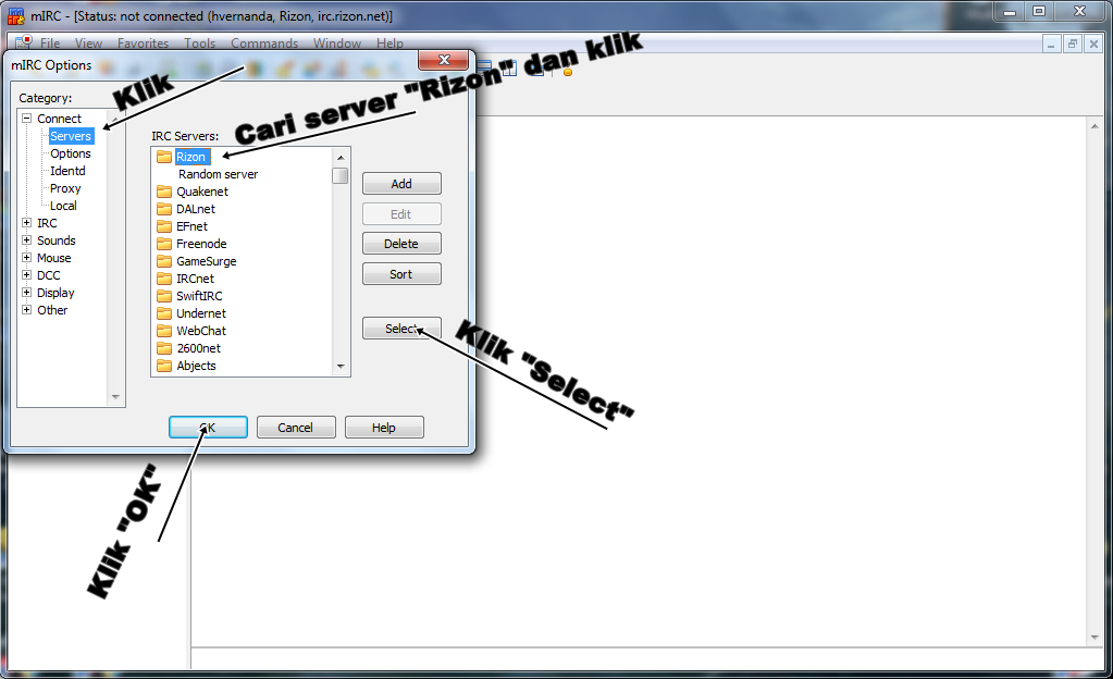 4. Nyalain internet (sudah jelas ) , jalankan program mIRC nya