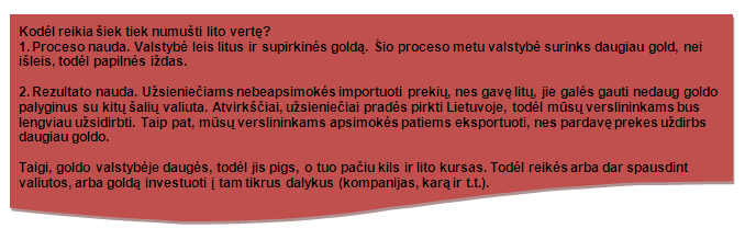 Tuo metu lito kursas buvo apgalvotai nuvertintas iki 0.03 gold už 1 litą sekant Lenkijos pavyzdžiu, kurie jau tuo metu buvo pirmaujantys savo ekonomika tarp kitų e-sim valstybių. Pasak Atsigauk, Lietuva galėjo būti antrąja šalimi iš karto po Lenkijos. Tai padaryta siekiant padidinti eksportą ir sumažinti importuojamas prekes eLietuvos rinkoje. Bet reiktų pabrėžti, kad keičiant valiutos kursą (didinant arba mažinant), daugiausia siekiama trumpalaikių, o ne ilgalaikių pokyčių. Sumažinus kursą, verčiant valiutą į gold‘ą jos reikėjo žymiai daugiau. Kadangi tai daryti nebeapsimokėjo, kaip jau buvo minėta, sumažėjo importas ir padidėjo eksportas, kas didžiąją dalį pelno padėjo išlaikyti eLietuvos rinkoje.