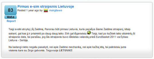 metu žaidusius šį žaidimą, eLietuvos piliečius. Straipsnio turinys buvo toks: