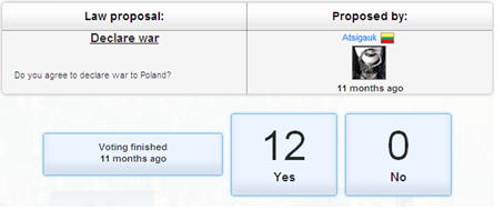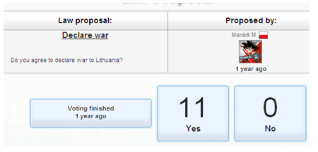 Po sėkmingo skverbimosi į Latviją, Lietuva savo ekspansinių žygių nenutraukė. Kita „auka“ buvo Latvijos sąjungininkė – Lenkija. Įstatymas dėl karo paskelbimo jai taip pat buvo priimtas vienbalsiai – visi 11, balsavusių šio įstatymo svarstyme, palaikė šią idėją ir pirmasis tiesioginis karas su šia valstybe prasidėjo.
