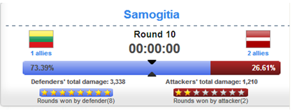 Užpulta eLietuva pirmojo bandymo uzurpuoti jos žemes eLatvijai baigėsi nesėkme. eLietuva laimėjo santykiu 8:2 ir apgynė vieną iš savo teritorijų – Samogitia, High Diamonds regioną.
