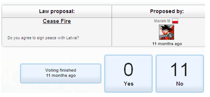 Po šio mūšio Latvijos prezidentas nusprendė paprašyti taikos, nes kariauti prieš eLietuvą Latvijai sekėsi sunkiai ir jie prarado du regionus. Seime vyko balsavimas dėl šio pasiūlymo. Aišku, ši sutartis vienbalsiai nebuvo priimta – eLietuvai neapsimokėjo – ji gana nesunkiai ir toliau galėjo uzurpuoti savo kaimynę, kuri prieš tai pati įsivėlė į šį karą.