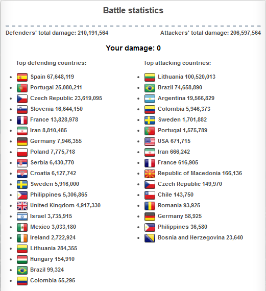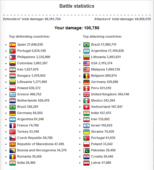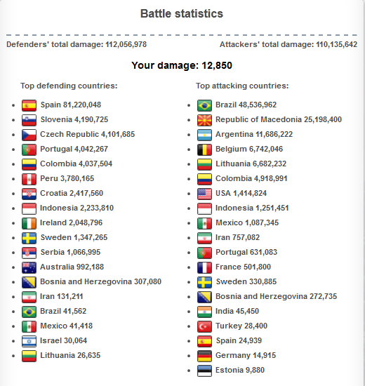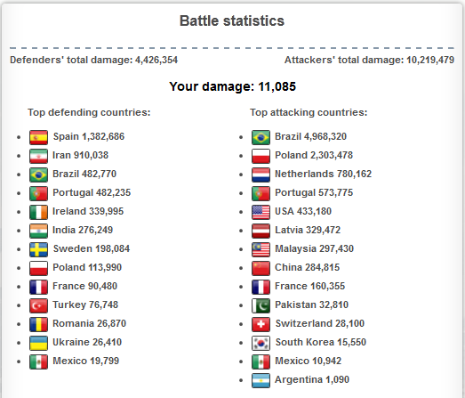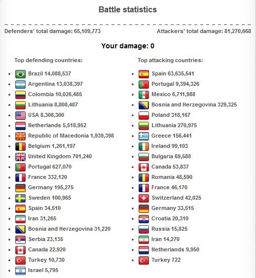 Pouco damage feito para uma batalha que daria o initiate para o vencedor. Seriam mais 24 horas garantidas para o Brasil em que a Espanha não poderia atacar Northeast(único local sem o debuff de 20%)
