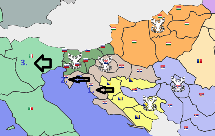 Po mom planu, koridor bi trebalo da nam naprave neka od prijateljskih zemalja i kao najpogodnija bi bila Bosna i Hercegovina. Bosna ima otvorrena rat sa nama i nema potpisanih MPP tako da nema bojazni za uništavanje istih. Plan je jednostavan, Bosna da nam probija put a Srbija da zauzima novoosvojene regije.