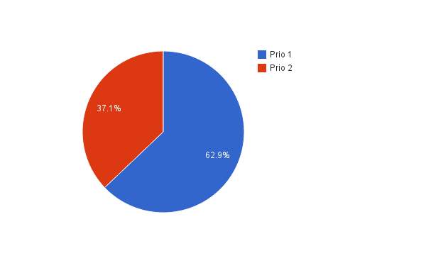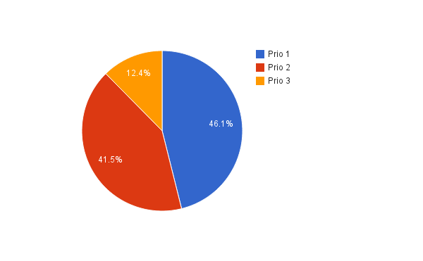 Där det är aktuellt finns ett cirkeldiagram per dag för att visa på skadans fördelning mellan de olika prio-alternativen.