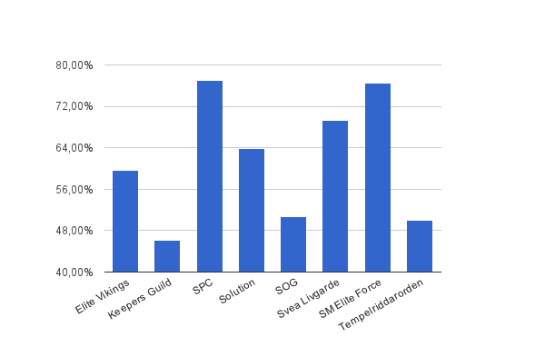 För varje dag lägger jag även in ett diagram som visar hur stor andel av varje MUs totala skada under dagen som var effektiv (alltså sammanlagt för samtliga prios MUn deltog i den aktuella dagen)