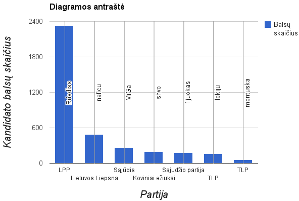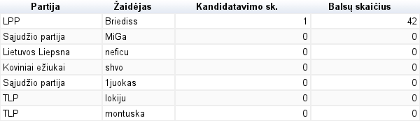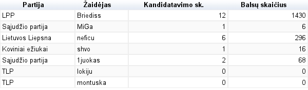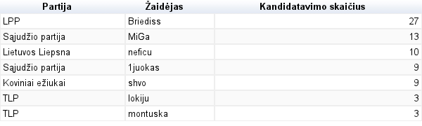 Iš kiekvienos Partijos pasirinkau daugiausia kartų kandidatavusius. Pasirinkimas vyko paprastai. Pavyzdžiui, LPP Briediss ženkliai lenkė kitus bendrapartiečius, tad buvo pasirinktas tik jis ir kiti neturėjo tiek balsų, kiek pagal didžiausią skaičių turėjo kitos Partijos. Todėl kai kuriose iš jų yra pasirinkti keli kandidatai, o kai kuriose (didžiojoje daugumoje) tik po vieną.