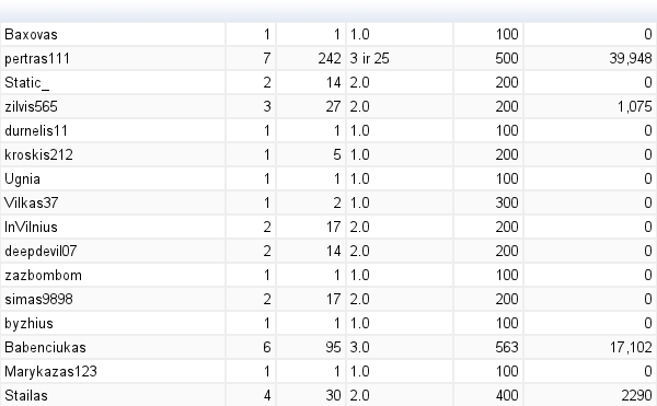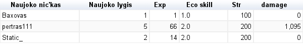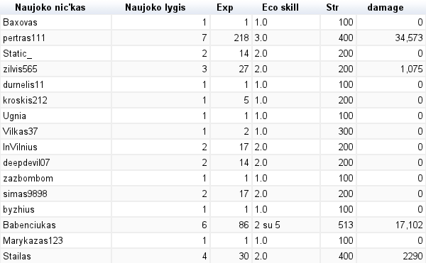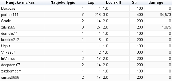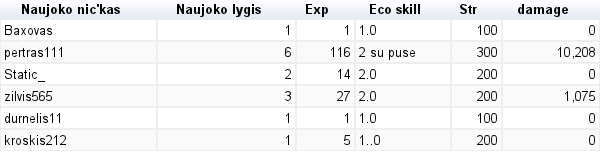 Stipriausias iš naujokų - Babenciukas su 513 jėgos, antroje vietoje lieka du žaidėjai - Stailas ir pertras111 su 400 jėga. Aktyviausias darbe taip pat yra pertras111 .
