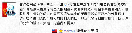 呵呵,大陆这潭水太混了,尤其是某个以畜生命名军团仗着人多嘴多,就乱喷人啊。