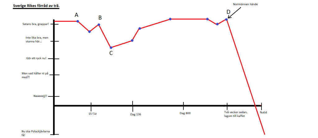 I den bifogade filen så kan ni KLART och TYDLIGT se en kraftig sänkning av Svea Rikes träförråd i samma stund som norrmännen kom in i bilden. (Punkt A)