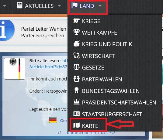 -Land: alle Kriege, in die das Land, in dem man sich grad befindet, verwickelt ist und die Kämpfe seiner Verbündeten
