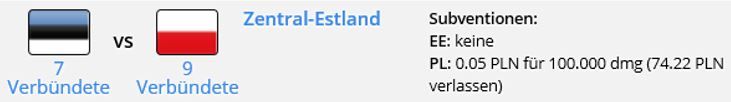 Im Beispiel zahlt Polen jedem Kämpfer FÜR Polen 0,05 polnische Zloty pro 100.000 Schadenspunkte, die der Kämpfer austeilt. 74,22 Währungseinheiten stehen dafür noch zur Verfügung.