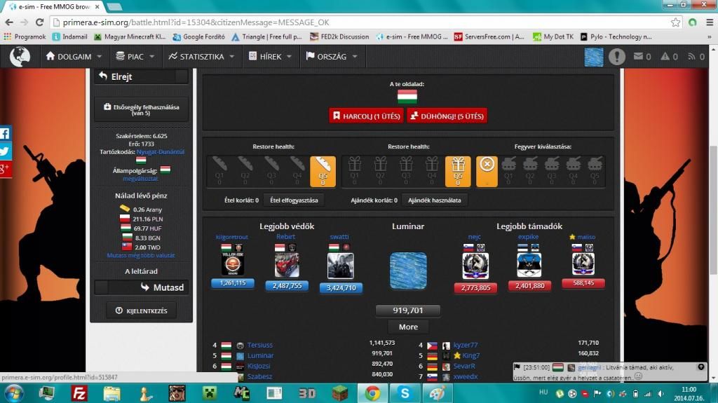 Activities in this game are divided into several modules. First is the economy as a citizen in a country of your choice you must work to earn money, which you will get to spend for example, on food or purchase of weapons which are critical for your progress as a fighter. You will work in either private companies which are owned by players or government companies which are owned by the state. After progressing in the game you will finally get the opportunity to set up your own business and hire other players. If it prospers, we can even change it into a joint-stock company and enter the stock market and get even more money in this way.
