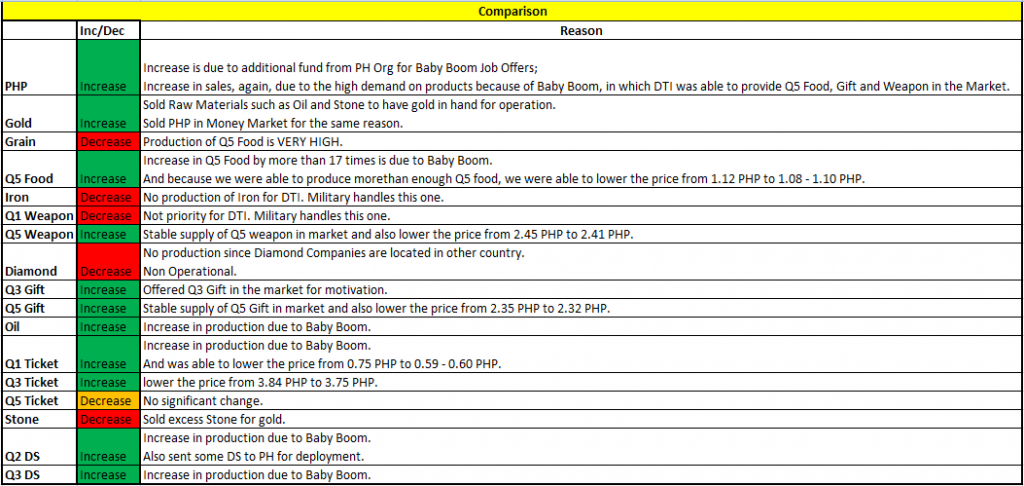 Ito naman ang table kung saan makikita kung bakit tumaas o bumaba ang isang category: