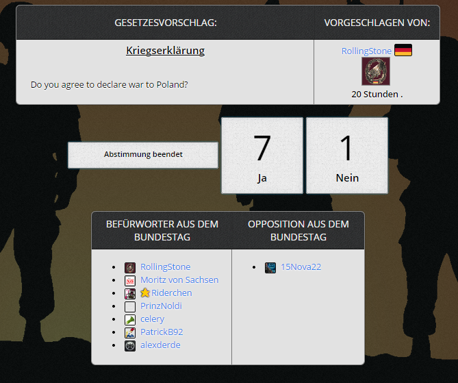 Auch ich war von Anfang an nicht überzeugt und hatte nicht unbedingt offensiv gegen Polen vorgehen wollen. Meine Regierungsmitglieder können das bestätigen!
